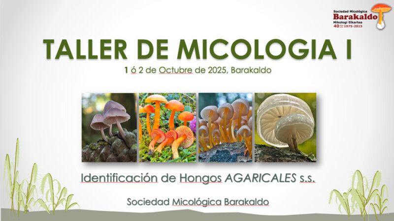 - Curso “Iniciación a la Micología”, destinado a aficionados que quieran empezar a dar los primeros pasos en el estudio de la Micología. Se impartirá el 1 y 2 de octubre de 19:00 a 21:00 horas en el Centro Cultural Clara Campoamor. Quien esté interesado, puede solicitar su inscripción enviando un correo a micologica@micologica-barakaldo.org. Las plazas son limitadas, 15 personas, y con preferencia a los socios. Las plazas que no se cubran con socios, se cubrirán con solicitantes no socios por estricto orden de inscripción. La fecha límite para inscribirse es el viernes 26 de septiembre.