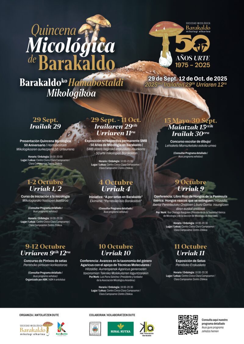 - Exposición retrospectiva: “50 Años de Micología en Barakaldo” en la que mostraremos toda nuestra historia desde 1975. Estará abierta del 29 de septiembre al 11 de octubre en horario de 10:00 a 21:00 en el Centro Cultural Clara Campoamor. La entrada es libre