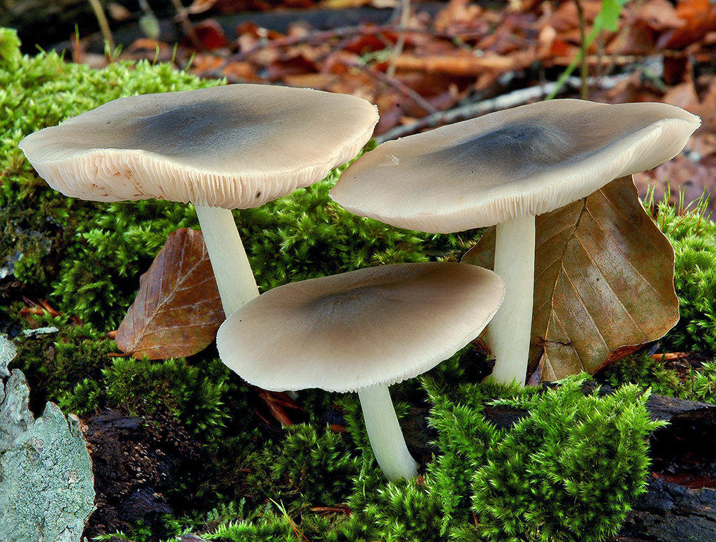 Caracteres macroscópicos. Píleo de hasta 70 mm de diámetro, primero hemisférico, después convexo, finalmente extendido y ligeramente umbonado, margen agudo, un poco estriado en tiempo húmedo, superficie piléica lisa, mate, un poco lubrificada en tiempo húmedo, finamente fibrillosa radialmente, de color gris pálido, gris marrón, gris verdoso, gris negro en el disco. Láminas moderadamente apretadas, anchas, libres, de color primero blanco crema, finalmente rosa carne, arista blanca o finamente floconosa. Estípite de hasta 80 x 8 mm, cilíndrico, ligeramente engrosado hacia la base, lleno, hueco en la madurez, cubierto de finas fibrillas blanquecinas, de color blanco o blanco crema. C0ntexto delgado, frágil, blanquecino, olor ligero rabanoide, sabor poco destacable.